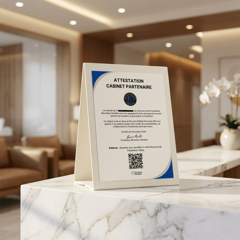 Une fois votre page personnalisée créée avec votre logo, votre nom et vos couleurs (temps moyen : 24 à 48H), vous pouvez immédiatement partager le lien avec vos patients ou imprimer votre attestation Partenaire avec le QR Code à placer en salle d'attente, à l'accueil de votre cabinet ou sur vos produits.